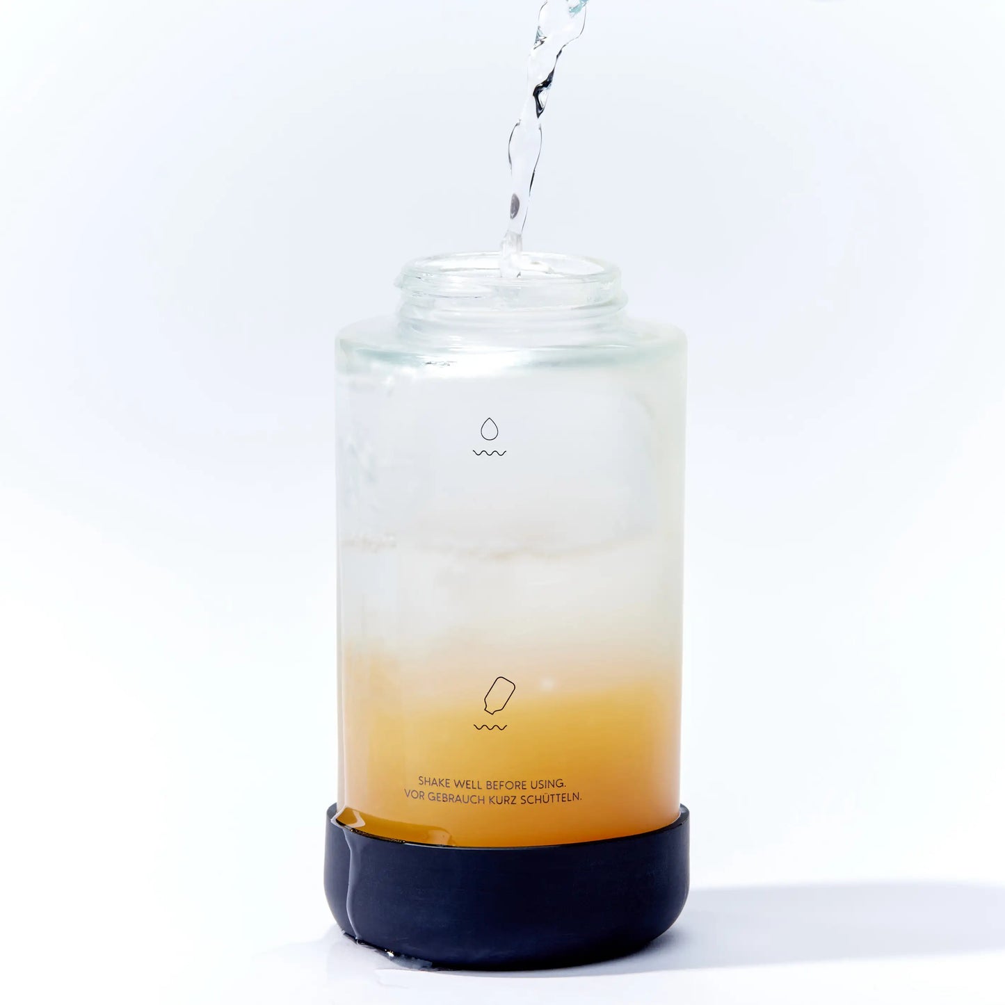 Transportieren müssen wir dieses Wasser dafür aber nicht. Und indem Du es zuhause selbst hinzugibst, ermöglichst Du uns, unser Shampoo in einer nachhaltigeren Verpackung zu transportieren. Denn Glas ist zwar schwerer als Plastik. Aber da wir nur das Konzentrat transportieren, sparen wir in Summe trotzdem.